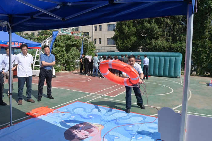 演練結束后,舉辦方在大廈籃球場開啟安全咨詢體驗活動。整個活動共設置了6個項目,分別為擁擠踩踏應急處置體驗區(充氣帳篷)、消防隱患排查試驗區、電動車電池穿刺爆燃體驗裝置、溺水自救互救教學培訓區、醉酒交通AR模擬體驗、安全標志互動區。活動現場氣氛熱烈,盡管天氣炎熱,但絲毫沒有減弱大家體驗掌握應急技能的熱情。