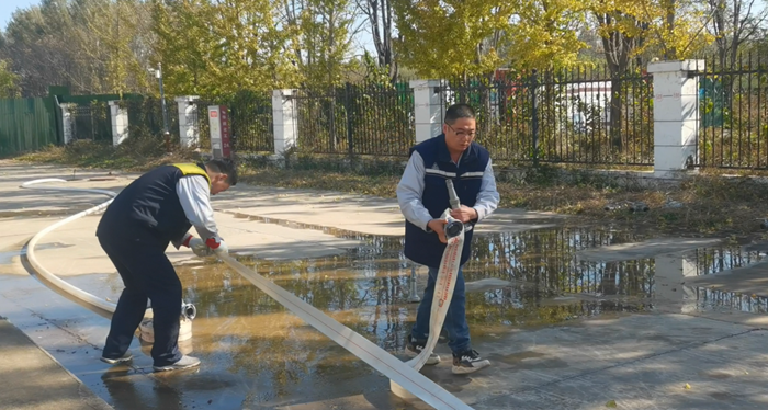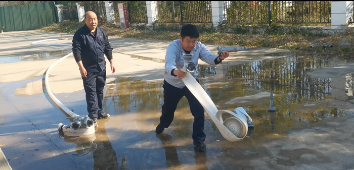 同時(shí),華騰化工還專門組織了消火栓實(shí)操。“先接水帶、再開(kāi)閥門、最后對(duì)準(zhǔn)目標(biāo)出水!”在安全員的指導(dǎo)下,員工兩人一組協(xié)作,快速完成水帶連接、水槍連接等步驟,水柱精準(zhǔn)噴射至指定區(qū)域,整個(gè)過(guò)程有條不紊。